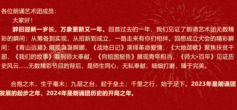河南师范大学大学生朗诵艺术团二〇二四年新年献词