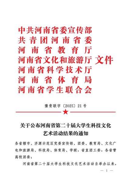 河南省第二十届大学生科技文化艺术活动获奖