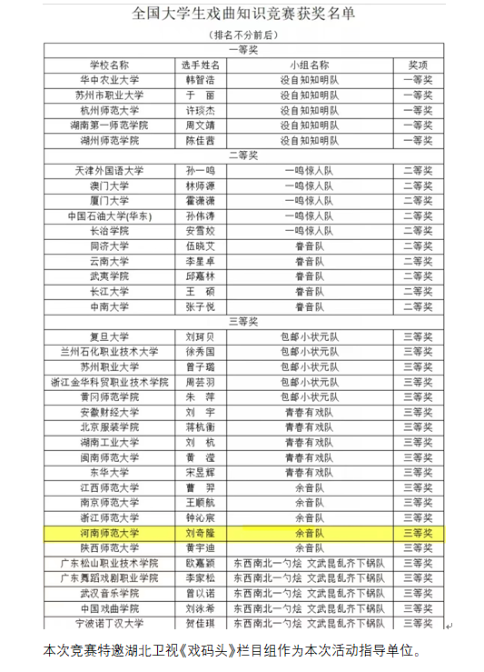 学生在全国大学生戏曲知识竞赛获三等奖