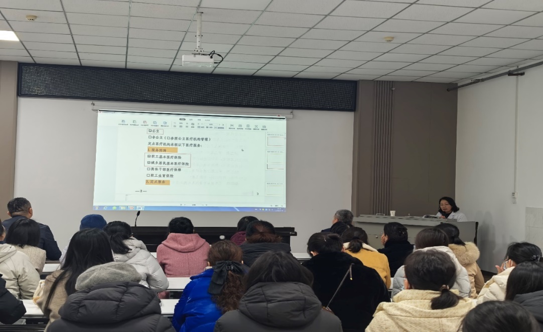 随后,吕岩副院长组织大家共同学习了职工医保相关政策及定点医疗机构服务协议内容,从医疗服务、费用结算、医疗价格与集采、违约责任等方面讲解医保政策与要求,全面加强我院职工医保服务能力。