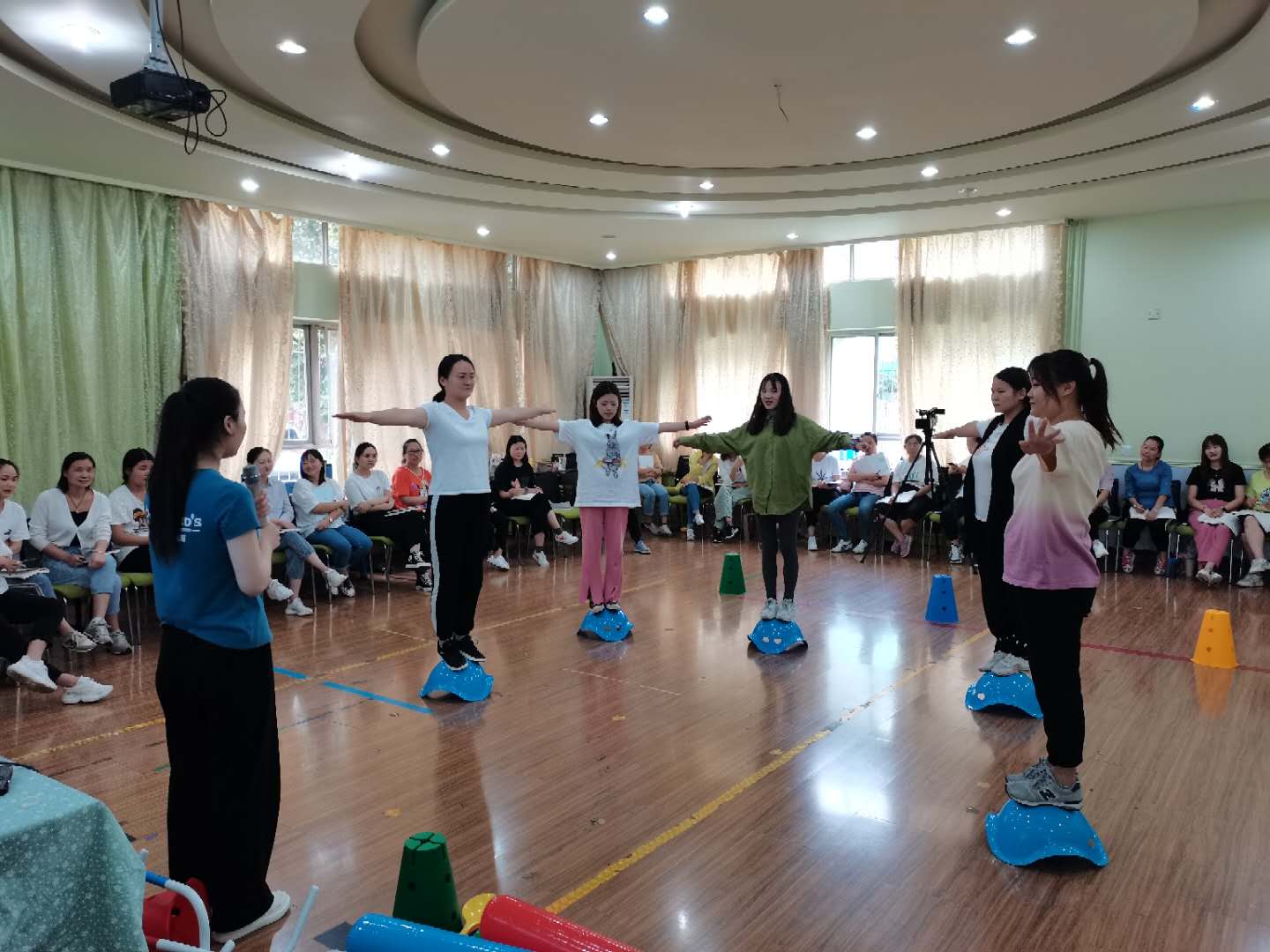 8月20日至21日邀请洪恩教育体智能项目首席培训讲师孙璐进行了两天的培训活动。她向我们分别介绍了50种 、910件洪恩教育体智能器材的名称和使用方法,针对不同年龄段的动作发展,制定不同的训练方法与提供各色各样的特色器材,以培养幼儿的五大身体素质。帮助幼儿园有目的、有计划地组织幼儿体育活动。带领教师们探索各种器材的玩法与对幼儿身体素质发展的作用。培训结束,对教职工进行了幼儿体操和幼儿体育理论的测试。本次五天的研修课程,以全体教职工考核均为90分以上的优异成绩完美结束。
