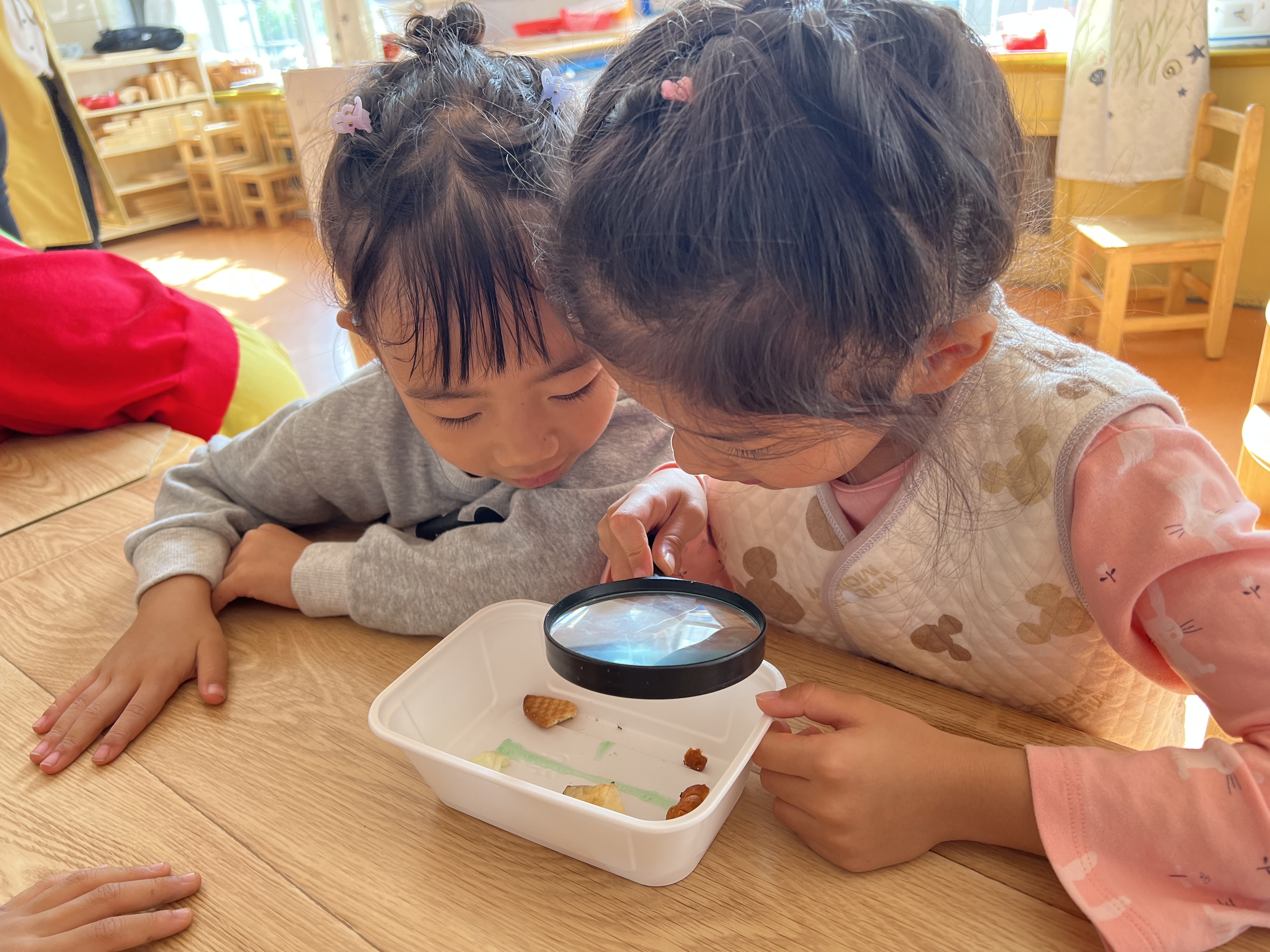 《有趣的影子》,影子变化多端、神秘莫测,总能激起孩子们无穷的探究兴趣。通过游戏、探索、实验的学习方式:玩手影、找影子,感受影子的变化。让孩子在玩中观察、探究影子的产生、影子与光的关系,在多次的游戏体验中,感受关于影子现象的神奇变化;《蚂蚁的生活》,蚂蚁是孩子们日常生活中随处可见的昆虫,孩子们在户外活动之余对蚂蚁产生兴趣并仔细观察。为了进一步开展深度学习,帮助孩子了解蚂蚁的外形和生活习性,老师带领孩子们一起进行探索研究。