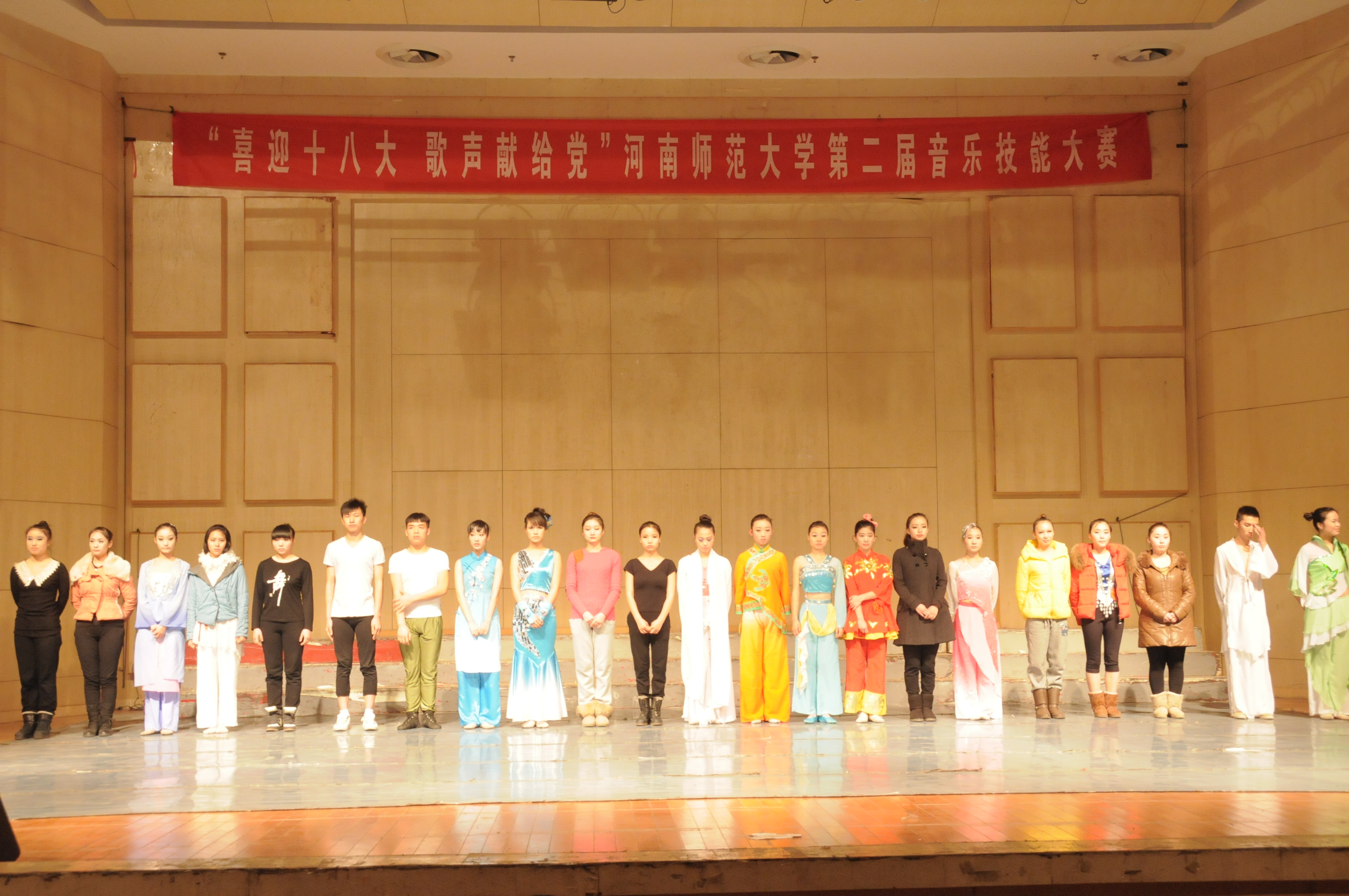 12月4日晚上7:30在音乐舞蹈学院音乐厅举行“喜迎十八大 歌声献给党”河南师范大学第二届音乐技能大赛专业组舞蹈组的比赛。本次比赛特邀张斌老师,李曼老师,贺电老师,李彩虹老师,马文老师,尚学钰老师,曹真臻老师担任评委。