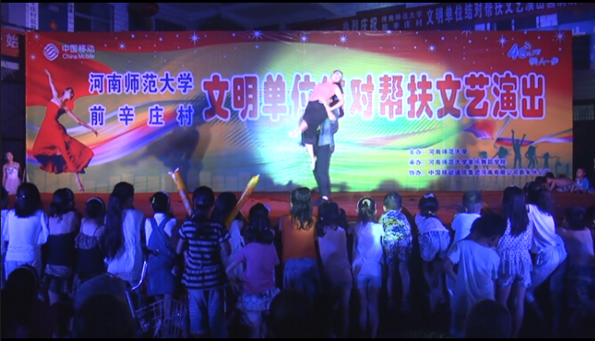 7月12日晚,音乐舞蹈学院“舞动中原,建功中原”送文艺下乡志愿服务队50余名文艺骨干走进牧野区前辛庄举行文明单位结对帮扶文艺演出。校党委宣传部、音乐舞蹈学院相关领导老师同全村1000多名村名共同观看此次晚会。