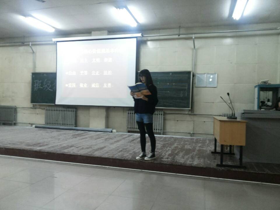 本次会议分为两个部分。第一部分为响应校团委“关于培育和践行社会主义核心价值观”的号召由音乐舞蹈学院团委宣传部为到场的人员对“社会主义核心价值观”的基本内容、发展历程、价值意义做详细介绍,并对其主要内容:“富强、民主、文明、和谐、自由、平等、公正、法治、爱国、敬业、诚信、友善”做出了具体分析,让在场同学受益匪浅。第二部分由各部室分别向大家介绍本部室一周内关于“中国梦·青春志·师大情”的主题活动,使各部室之间得到充分了解并能合理配合学院工作。最后,音乐舞蹈学院团委书记