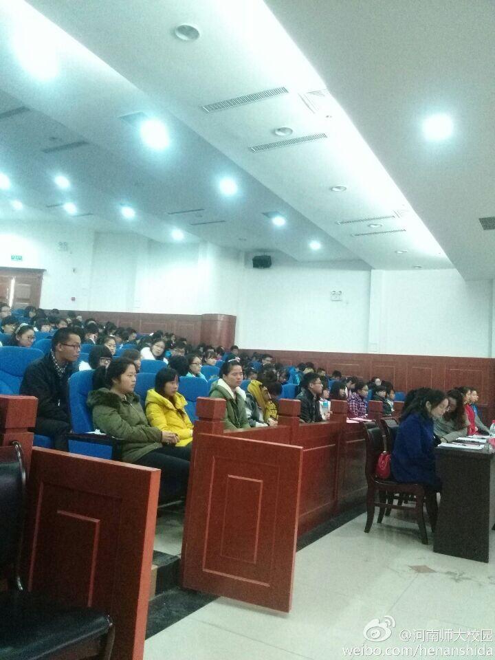 2014年11月16日星期日下午两点半,河南师范大学“青春志,师大情”新生演讲赛英文组预赛在模拟法庭举行。参加这次演讲的是各个学院的选手。演讲内容是选手们自己准备的,选手们选材内容涉及广泛、发音标准,大部分选手表达非常流利,华丽优美的言辞、慷慨激昂的演讲、丰富的肢体动作引来场内一阵阵的掌声,现场气氛十分活跃。在比赛中间,主持人还进行了有奖抢答活动,问题都是和我们息息相关的,对我们的生活有一定帮助。微博墙上一直滚动着同学们对选手的鼓励。比赛过程中,全场座无虚席,每三位选手演讲结束,评委老师们便给出一个个最恰当的分数,让每个人的才华都得到了肯定。比赛即将结束时评委进行了精彩的点评,指出演讲过程中的优点与不足,并向同学们传授了演讲的技巧,使同学们受益匪浅。