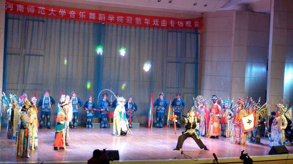 2014年12月30日19点30分,河南师范大学音乐舞蹈学院主办的迎新年戏曲专场晚会在音乐厅成功举行。莅临本场晚会的领导老师有著名理论家河南省艺术研究院研究员马紫晨老师,国家一级编剧王国毅老师、新乡市戏剧家协会会长王文洋老师,新乡市戏剧家协会豫剧学会会长张全顺老师,音乐舞蹈学院院长段续老师、副书记董国强老师、副院长李铭镝老师、张英华老师、杨芳老师、师玉丽老师、王东雪老师、刘洋老师以及新乡电视台民生频道的记者们。