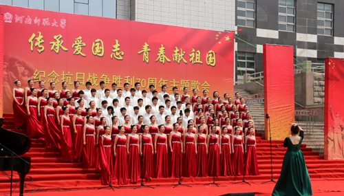 此次歌会作为我校纪念抗日战争胜利70周年的重点活动,旨在引导青年学生继承和弘扬爱国主义精神,以饱满的热情和奋发进取的精神状态唱响“传承爱国志青春献祖国”的主旋律,使同学们深刻意识到当代青年应肩负振兴祖国的重大责任和光荣使命。