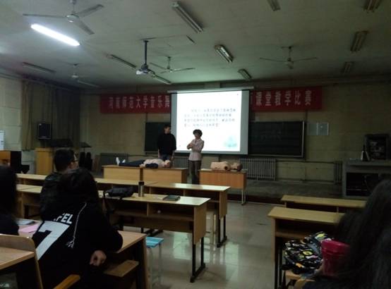 2015年5月10日晚,校医院曹艳萍老师在音乐楼501教室为音乐舞蹈学院同学做了一场别开生面的医疗急救培训讲座。14级辅导员樊晓腾老师以及14级的全体同学到场参加了此次培训。