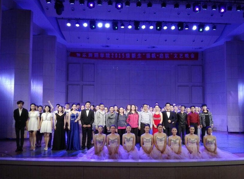 2015年10月9日晚19点30分,音乐舞蹈学院2015级于音乐厅举办了一场精彩的文艺晚会。莅临本次文艺晚会的有团委书记郭文芳老师、器乐教研室程峰老师、声乐教研室魏波老师、周亚娟老师、庞洁老师、2013级辅导员宋军丽老师、2014级辅导员樊晓腾老师、2015级辅导员马颖辉、崔溜博老师及辅导员助理吴燕老师、同时到场的有2015级全体学生。