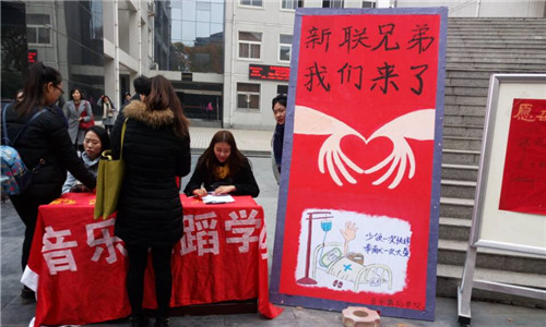 2015年11月12日上午九点半,音乐舞蹈学院于帕瓦罗蒂音乐楼前,为我校新联学院2012级音乐学专业的邵文超同学组织爱心募捐活动,众多师生及爱心人士都前来参与。