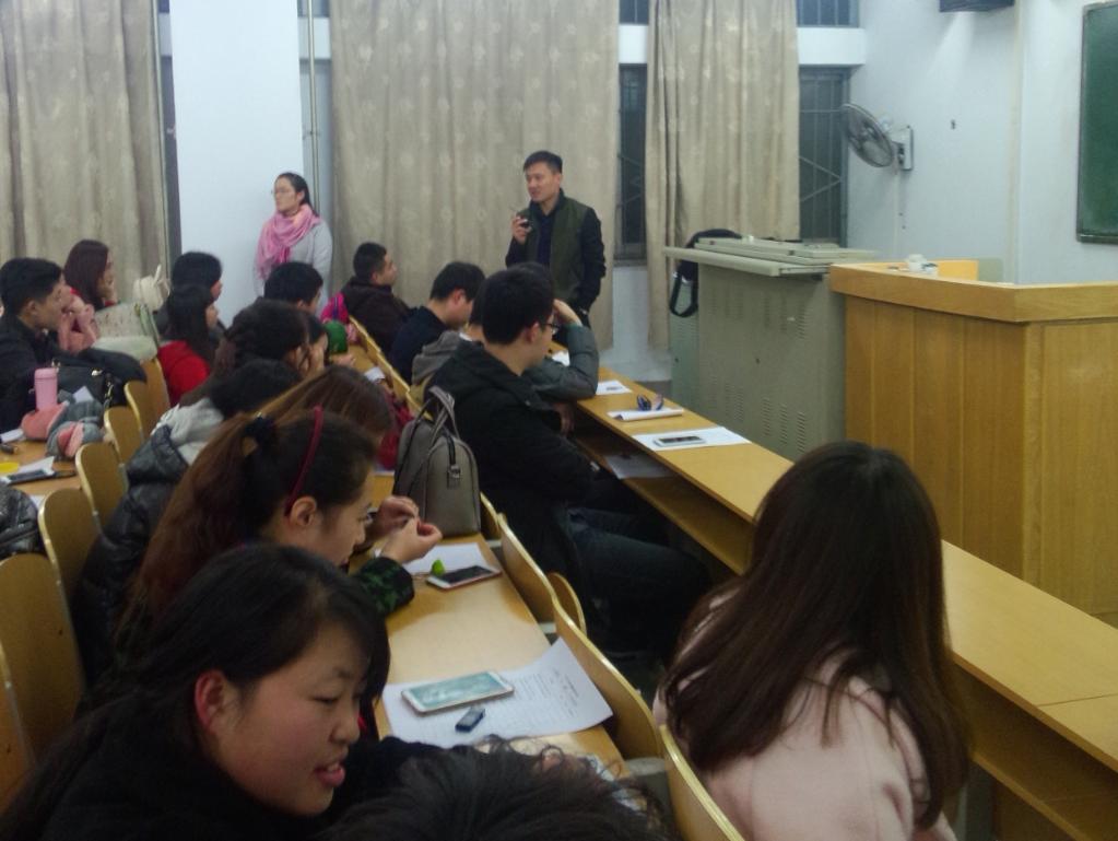 此次汇报大会主要分为三个板块。首先由参加“2015年河南省第十三届高等学校师范教育专业毕业生教学技能大赛”的经纬同学展示参赛作品。除了展示教学技能以外,她分享了参赛过程中如何结合新课标内容设计优秀的教学课件,在比赛经验上教授大家如何克服紧张心理,以最好的状态授课,充分利用专业知识,提高教师技能。接着,在河南师范大学附属中学、郑州102中学、浚县一中、和平路小学、新乡育才小学、长垣县一中等20余所中小学实习的学生代表和支教代表进行实习汇报。同学们讲述了他们走上讲台后角色转换的心情,和实习内容以及实习中所遇到的奇闻乐事,大家听得津津有味。其中,课堂讲课、课下备课、实习问题和困难作为讲述重点,在分享实习经验中,大家相互交流、产生共鸣,并为下一阶段实习做出计划和安排。最后,由谢老师和宋老师进行总结。希望经过实习的同学不要忘记在实习中获得的真知,学会真正投入社会、投入集体、认真做事,以诚恳的态度面对自己的实习生活,通过实习真正认识到从学生向社会人的转变,发现问题,解决问题。