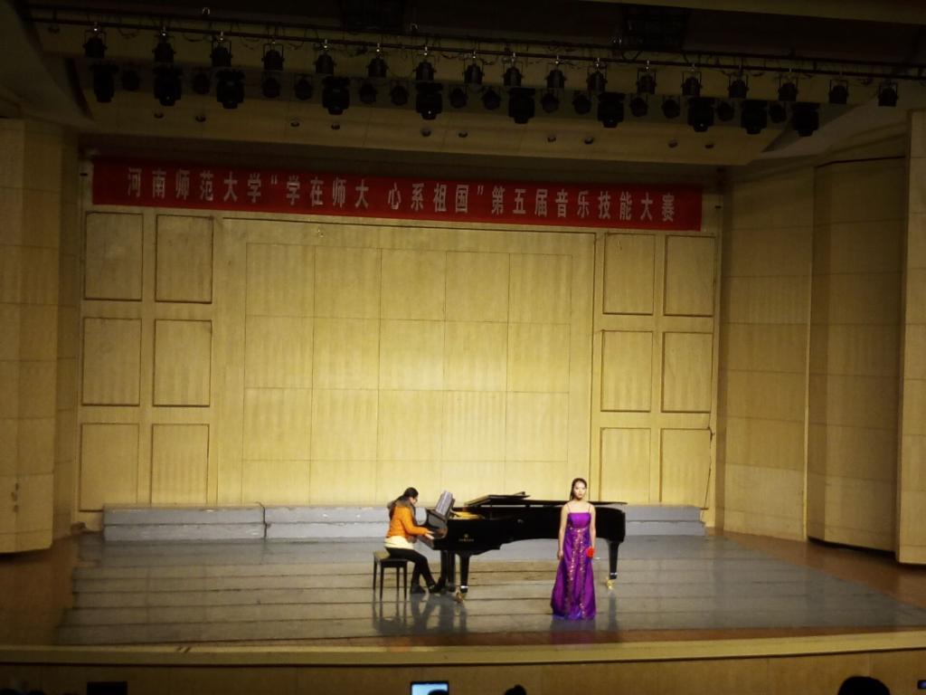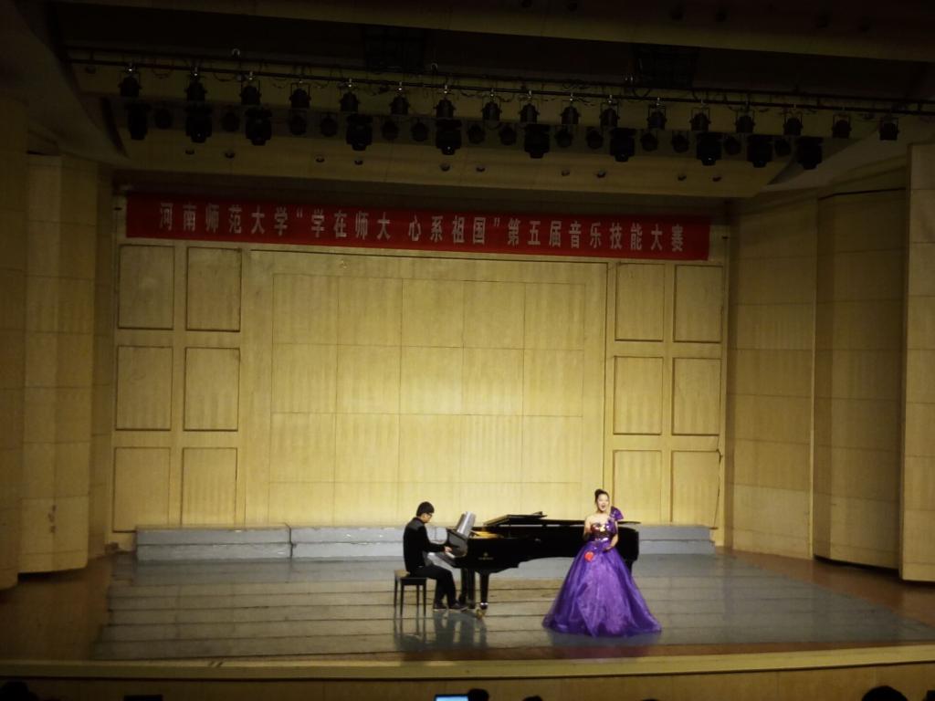 2015年12月23日上午8点,由学工部、学生处、研工部、教务处、就业指导服务中心、校团委主办,音乐舞蹈学院承办,以“学在师大,心系祖国”为主题的河南师范大学音乐技能大赛专业声乐民族类比赛在音乐厅成功举办。我院马颖辉、张珂、魏波、李佳佳、郝静、吴俊延6位老师担任本次比赛的评委。