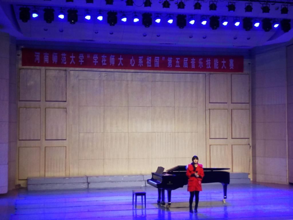 2015年12月23日上午10点,由学工部、学生处、研工部、教务处、就业指导服务中心、校团委主办,音乐舞蹈学院承办,以“学在师大,心系祖国”为主题的河南师范大学音乐技能大赛专业组通俗类歌曲比赛在音乐厅成功举办。我院马颖辉、张珂、魏波、李佳佳、郝静、吴俊延6位老师担任本次比赛的评委。