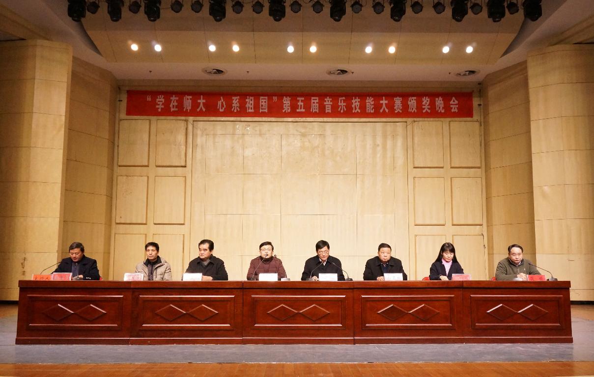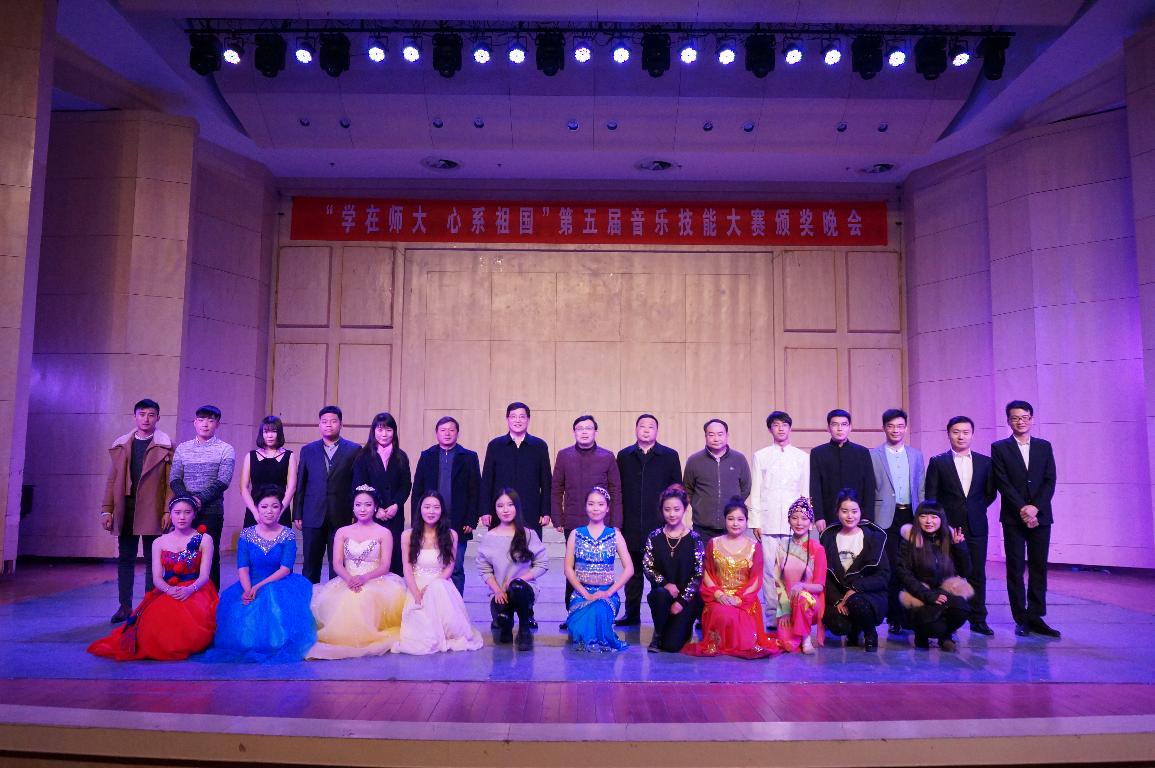 本场晚会开始前进行了庄重又简短的颁奖仪式。仪式由陈俊杰老师主持,段续老师和张向战老师分别宣读了参赛学生获奖名单和优秀组织奖名单。随后,到场嘉宾分别为获奖的老师和同学们颁奖。最后,副校长李雪山进行了鼓舞人心的发言。他首先充分肯定了本次大赛的各项工作,随后对大赛做了简要总结,最后为老师和同学们送上了新年的祝福。颁奖仪式结束后精彩的晚会拉开帷幕。获得本次大赛一等奖的同学纷纷登台献艺,将精彩的节目献给观众。舞蹈节目动作优美,传递出浓烈的情感;器乐合奏高潮迭起,中西方乐器碰撞出火花;钢琴独奏清静悠远,使听众如坠仙境;歌曲演唱如有天籁,点燃现场激情。晚会在一首高难度的美声合唱《祖国我为你干杯》中落下帷幕,精彩绝伦的演出赢得了观众们的热烈掌声。