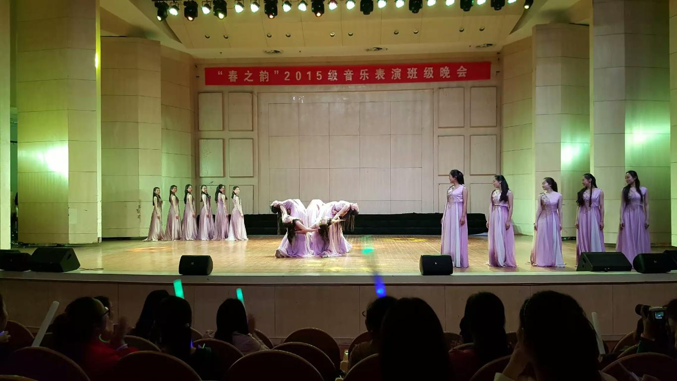 2016年4月13日晚上7点30分,2015级音乐表演班春之韵班级晚会在帕瓦罗蒂音乐艺术中心音乐厅成功举办。莅临本次晚会的有李鸣嫡院长,团委书记郭文芳老师,音声乐教研室别松梅老师,钢琴教研室李萌老师,2015级辅导员马颖辉老师、吴燕老师。