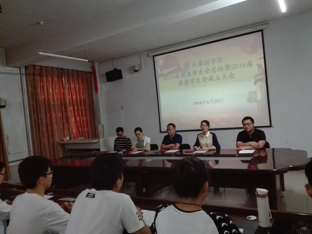 6月29日晚,音乐舞蹈学院2015届团委学生会总结暨2016届团委学生会成立大会在我院会议室召开。音乐舞蹈学院党委副书记蒋晋光、校长办公室副主任、原音乐舞蹈学院团委书记郭文芳、2012级辅导员宋军丽、2015级辅导员马颖辉、2014级辅导员樊晓腾及学院团委学生会所有成员参加了本次大会。