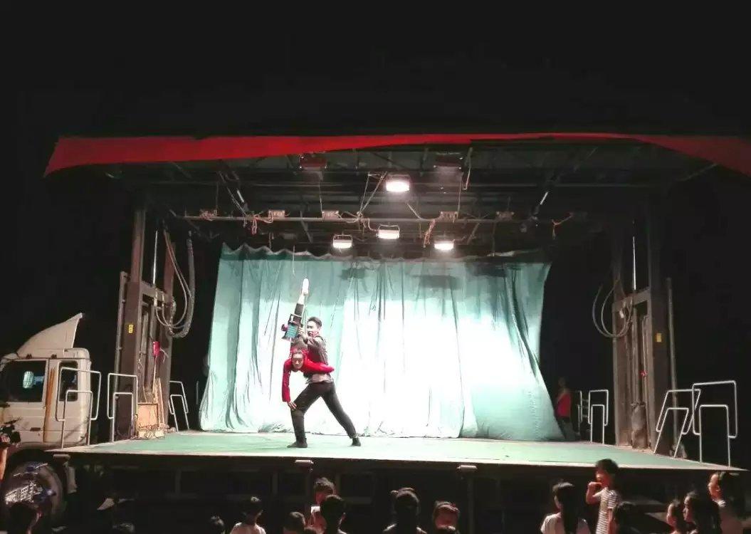 晚会伴随着开场舞的音乐开始,当地村民纷纷前来观看演出。诗歌朗诵《红头巾》,表达了在硝烟弥漫的战争中,红头巾是生命的勇气,希望的胜利;双人舞《红灯记》,讲述了抗日战争时期为了党的工作需要,父亲与女而不得不分离的情景,及二人依依不舍的情怀;独特新颖的话剧《醒》,将人内心深处的两面性,恶魔与天使分别表现的惟妙惟肖,让在场观众懂得了做人首先要严谨自律。