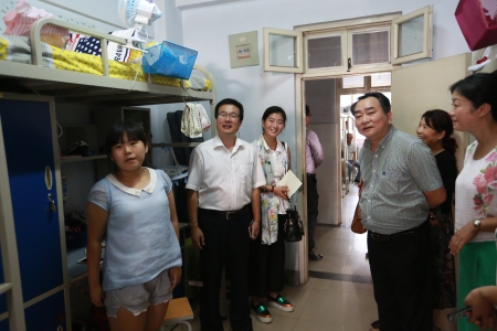 我院领导老师每到一个宿舍,都会亲切地同新生交谈,询问大家来自哪里、入学报到是否顺利、是否适应学校的环境等相关问题,此外,还仔细查看宿舍的各种设施是否完好。在走访中,我院领导老师特别提醒大家要提高自我保护意识,不要轻易相信来宿舍推销商品的人员,谨防上当受骗。同时还要注意宿舍的安全问题,出门关好门窗,妥善保管自己的贵重物品。最后,我院领导老师希望2016级新生可以相互帮助、相互理解、相互学习,尽快适应大学生活,更好地进入角色。