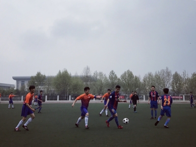 赛前,虽然下着蒙蒙细雨,但足球员们、拉拉队员和观众们的热情丝毫没有受到影响。上场后,双方队员相互握手,本着“友谊第一,比赛第二”的精神比赛正式开始!赛场上每个足球队员都全神贯注,竭尽全力;求胜的欲望、默契的配合、灵活的战术,使得我方在上半场领先得到宝贵的1分;观众和拉拉队员们也“不甘示弱”的为我方队员加油呐喊;寒风挡不住球员们的热情,必胜的信念激励着每个人,球员们展示了勇往无前的运动精神;最后双方以1:1结束了比赛。