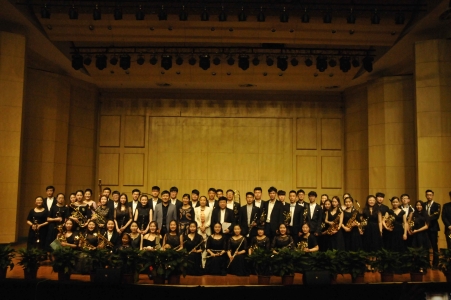 首先,本场音乐会以一首旋律优美、节奏活泼的《威廉·退尔序曲》拉开帷幕,该曲宛如一首交响诗,将阿尔卑斯山下瑞士的自然环境如同一幅美丽的画卷呈现在我们眼前。“停唱阳关叠,重擎白玉杯“,由萨克斯主旋演奏的《何日君再来》深沉平静、轻柔忧伤,夹带着秋意,诉说着思念,又送来道不尽的祝福,使人心潮难平。随后,一曲《凯旋进行曲》,将人们胜利的喜悦,高亢的情绪和盛大的场面刻画的惟妙惟肖,同时也将本场音乐会推向高潮。长号有着悠久的历史和独特的外形,因此被人们所熟知,一首《长号之家》展现了长号滑音和吐音的独特技巧。以小号为主旋演奏的《舞曲》、《龙舌兰》,情绪热烈,节奏欢快,随着打击乐的加入使之充满动感,音乐会的氛围持续热烈,却已悄悄接近尾声。我国西部地区地形复杂,气候类型多样,一首《西部人序曲》歌颂了西部地区的雄伟奇观,为音乐会的结束画上了圆满的句号。最后,学院副院长谢世超老师作了发言,对所有参演学生提出表扬,同时也给予了参演本场音乐会百分之八十左右的辅修生满满的鼓励。