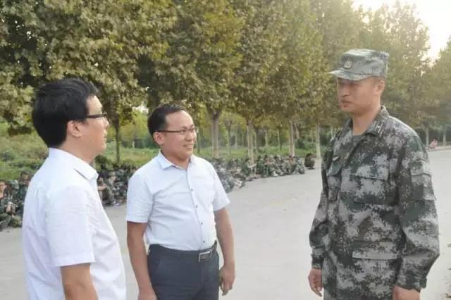 杨书记一行到达我院新生训练区域后,认真观看了我院新生队列训练。在看到我院参训新生个个精神抖擞、动作训练有素又满脸汗水,杨书记叮嘱2017级新生辅导员王小君要时刻关注新生身体状况,在圆满完成各项军训任务的同时确保每一位新生身体健康。军训间歇,杨书记向我院军训教详细询问了我院新生军训情况,并对教官们的辛苦工作表示诚挚谢意。杨宝刚书记还与正好路过指导各连队军训工作的我校2017级学生军训旅旅长、中国人民解放军32150部队马长浩少校,进行了亲切交流。