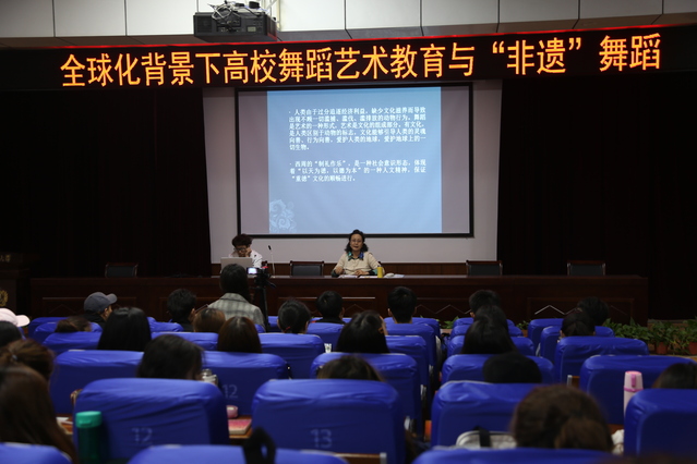 4月8日上午,金秋教授应邀在我校做了题为《全球化背景下高校舞蹈艺术教育与“非遗”舞蹈》的学术讲座。音乐舞蹈学院舞蹈专业全体师生参加了此次学术交流活动。