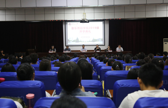 9月24日下午,音乐舞蹈学院2019级新生开学典礼在党校教室召开。学院党政领导、科级干部、专兼职辅导员、新生班主任和2019级本科生、研究生参加典礼。