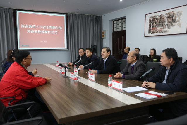 周菁葆教授在表态发言中,对学校及学院领导的关心与支持表达了谢意。周菁葆教授表示,希望利用这次机会,依托河南师范大学这个平台,将个人40年丝绸之路音乐文化系列研究成果奉献出来,为我国丝绸之路音乐文化研究与交流提供重要支撑,同时也为国家“一带一路”战略在文化交流与发展上提供有力支持。