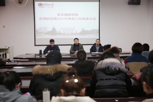 1月17日下午,我院疫情防控暨2021年寒假工作部署会议在学院二楼会议室召开。学院领导班子和全体教职工参加会议。会议由学院党委书记侯帅主持。