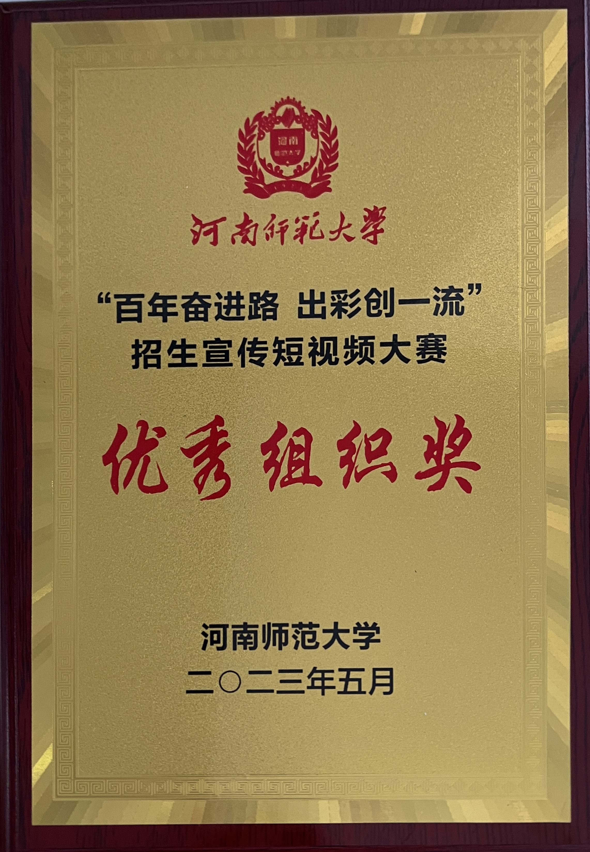 近日,我院招生宣传工作再创佳绩,荣获2023年“百年奋进路 出彩创一流”第三届招生宣传短视频大赛优秀组织奖。