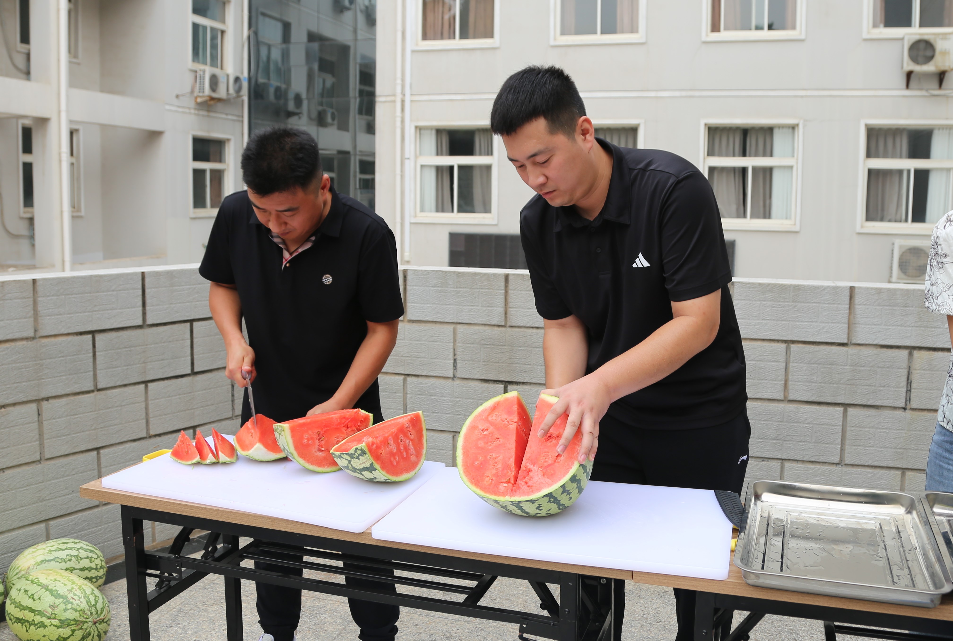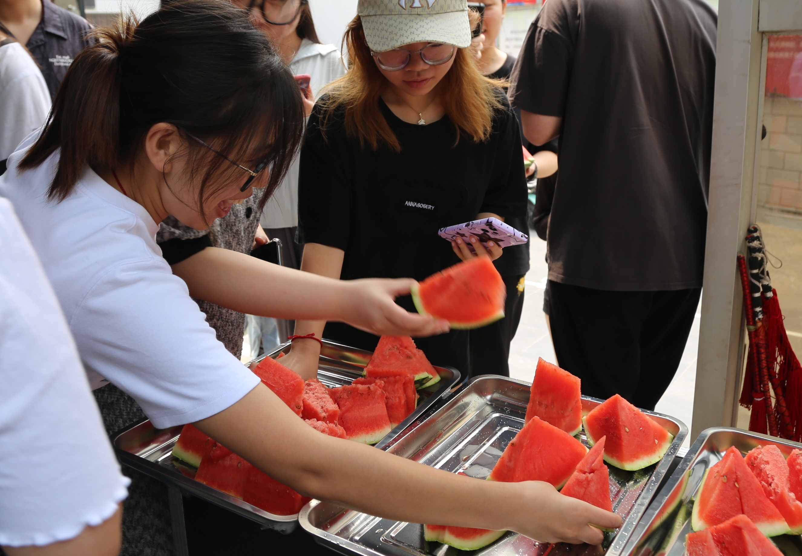 院党委副书记徐忠奎对全体演职人员的辛苦努力表示感谢。他表示,校庆晚会是传承师大精神、展现学校百年办学历程、凝聚师生情感的重要载体,希望全体演职人员再接再厉,继续保持积极向上的心态,在细节上不断精益求精,为办成一场具有特色、高水平、令人印象深刻的校庆晚会而加油努力。随后,徐忠奎携全体辅导员走进各排练场地,为同学们送上解暑西瓜,既是炎炎夏日的一份清凉,更是学院对同学们的一份关怀。同学们纷纷表示:“感谢学院的悉心关怀,我们一定以更加昂扬的斗志投入到排练中,为学校百年校庆贡献自己的力量。