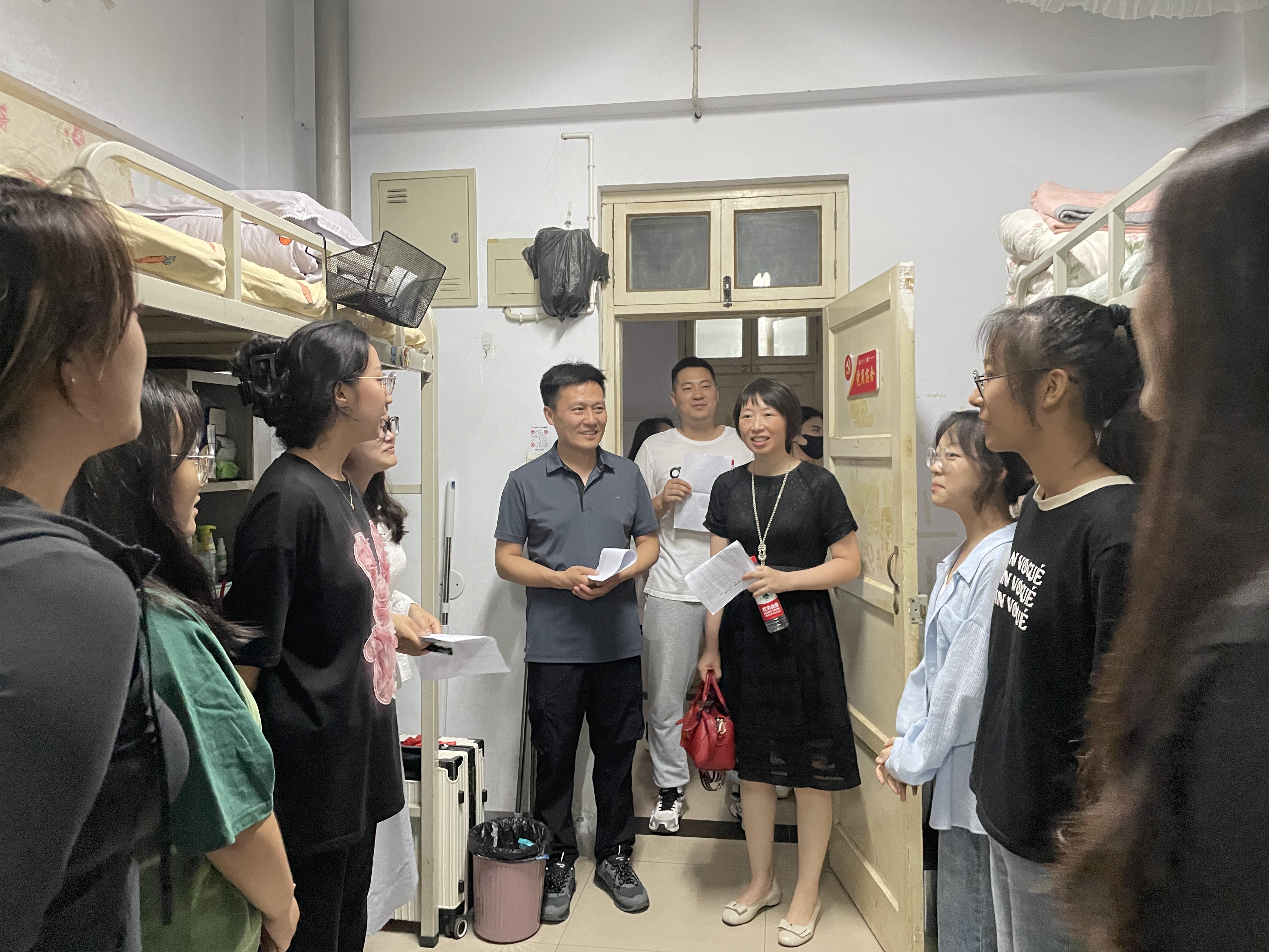 9月10日下午,我院领导班子成员携全体政工干部走访西寓三号楼、东寓十四号楼新生宿舍,关心慰问2023级新同学。
