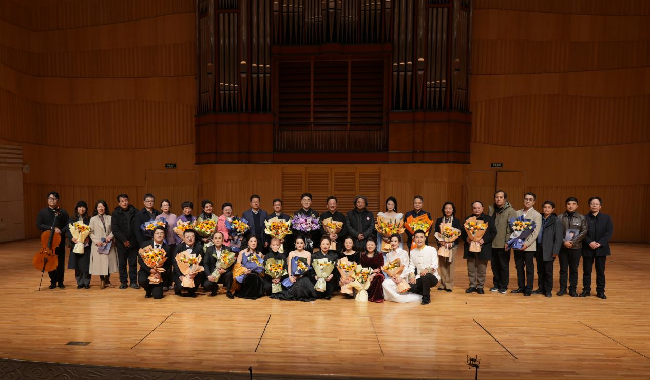 音乐会汇聚了李新现、陈滢竹、庄云龙王山等金钟奖得主,联合我院及兄弟院校优秀教师、校友同台献艺。演出曲目涵盖古今,既有《定风波·莫听穿林打叶声》《踏莎行·雪似梅花》《赠汪伦》等以古典诗词为题材的作品,将传统文化精髓与现代作曲技法巧妙融合;也有《忧郁》《梦与诗》等基于现代诗歌创作的艺术歌曲,情感细腻,韵味悠长。《月下情歌》《纪念碑》两首新作分别以爱情与人文思考为主题,展现出晁然在创作题材与音乐语言上的不断探索。现场气氛热烈,掌声不断。