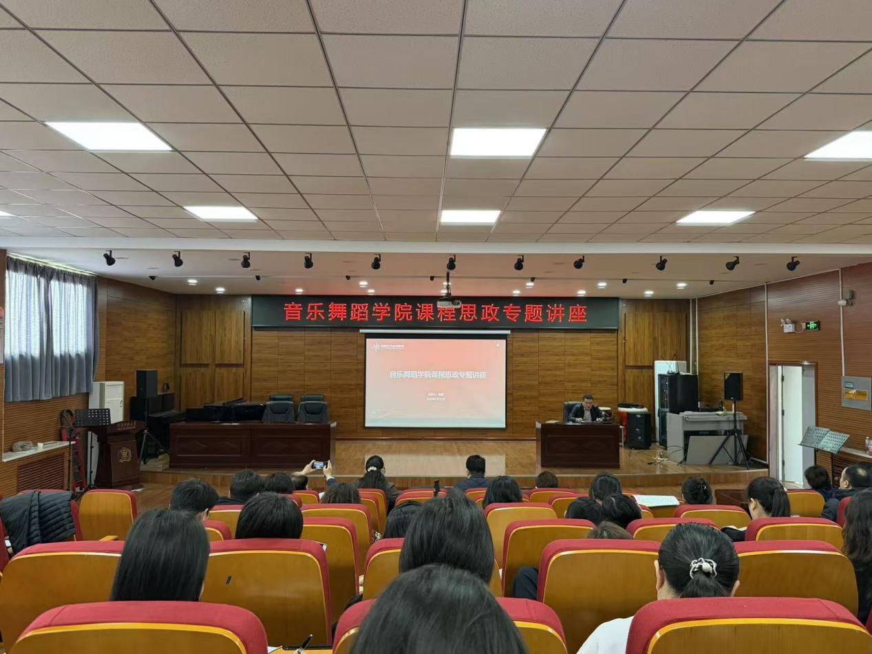1月13日下午,我院课程思政专题讲座在音乐北楼501会议室开展。学院党委副书记曲嘉作专题报告,全体领导班子及教师参加学习。