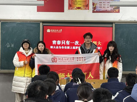 为紧密联系生源基地,展示我校办学成就与育人特色,吸引更多优秀学子报考,1月22日,由我院本科生组成的宣讲团队,返回母校辉县市孟庄中学开展“我是师大代言人”招生宣讲活法,取得良好成效。