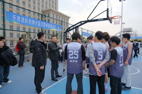 比赛正式开始前,我院党委副书记曲嘉到达现场对队员们进行动员,他鼓励全体队员要团结一心,敢打敢拼,打出我院学子积极向上的精神面貌。随着裁判一声哨响,比赛正式开始。比赛初期,对手攻势凌厉,防守严密,加之是第一场比赛我院队员进入状态较慢,频频失误,首节比赛十分被动。节间休息,教练迅速进行战术调整,指导队员们调整状态。第二节比赛队员之间相互鼓励、默契配合,进攻端果断突破、精准投篮,防守端严密卡位、积极拼抢,上半场结束我院队伍成功实现反超,建立起领先优势。