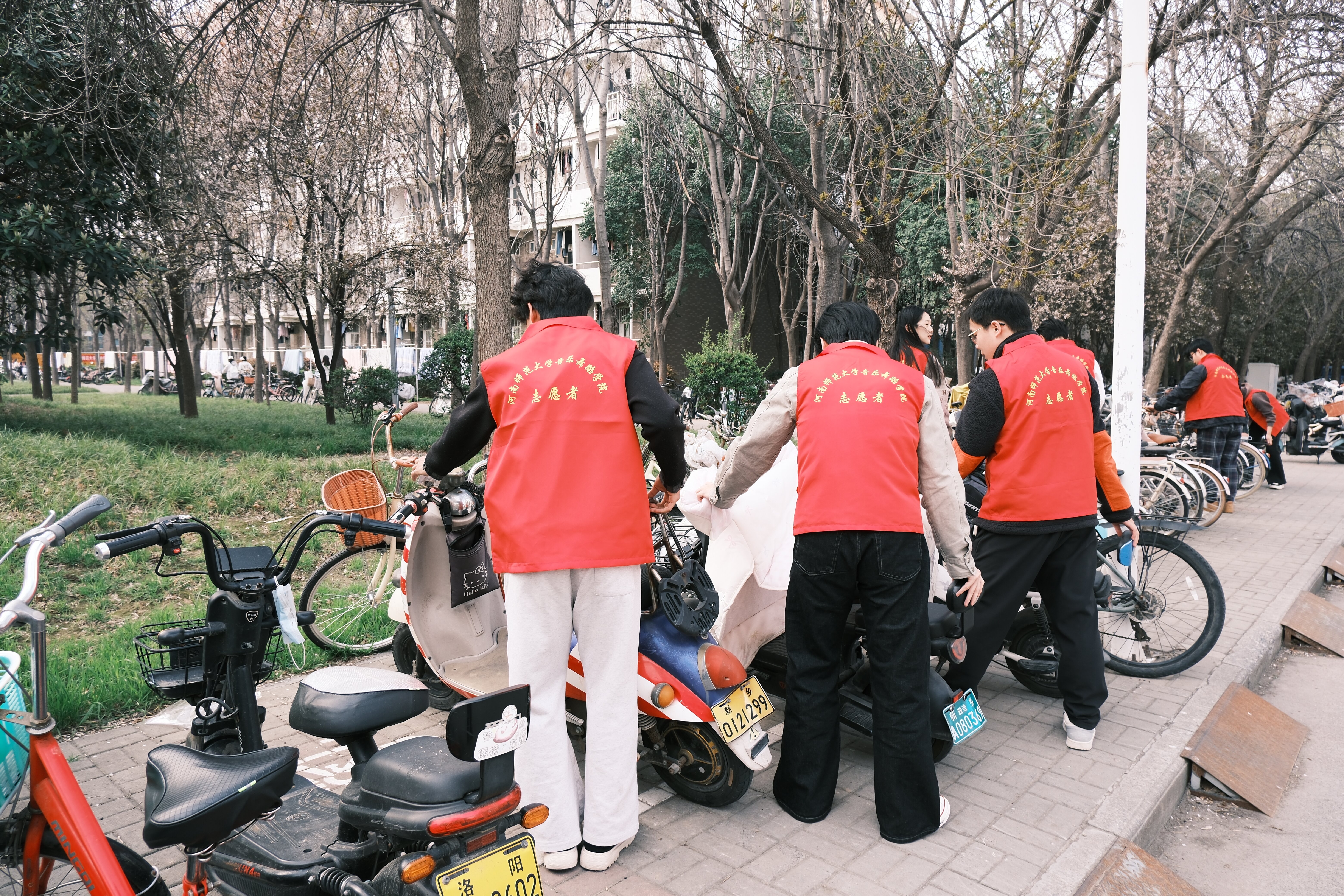 理论宣讲结束后,同学们迅速投入实践环节,开展宿舍楼前车辆摆放志愿服务。大家分工明确、协作有序,对随意停放的车辆逐一归位,畅通出行通道、美化社区环境,从身边小事做起,将雷锋精神转化为服务同学、共建文明社区的实际行动。