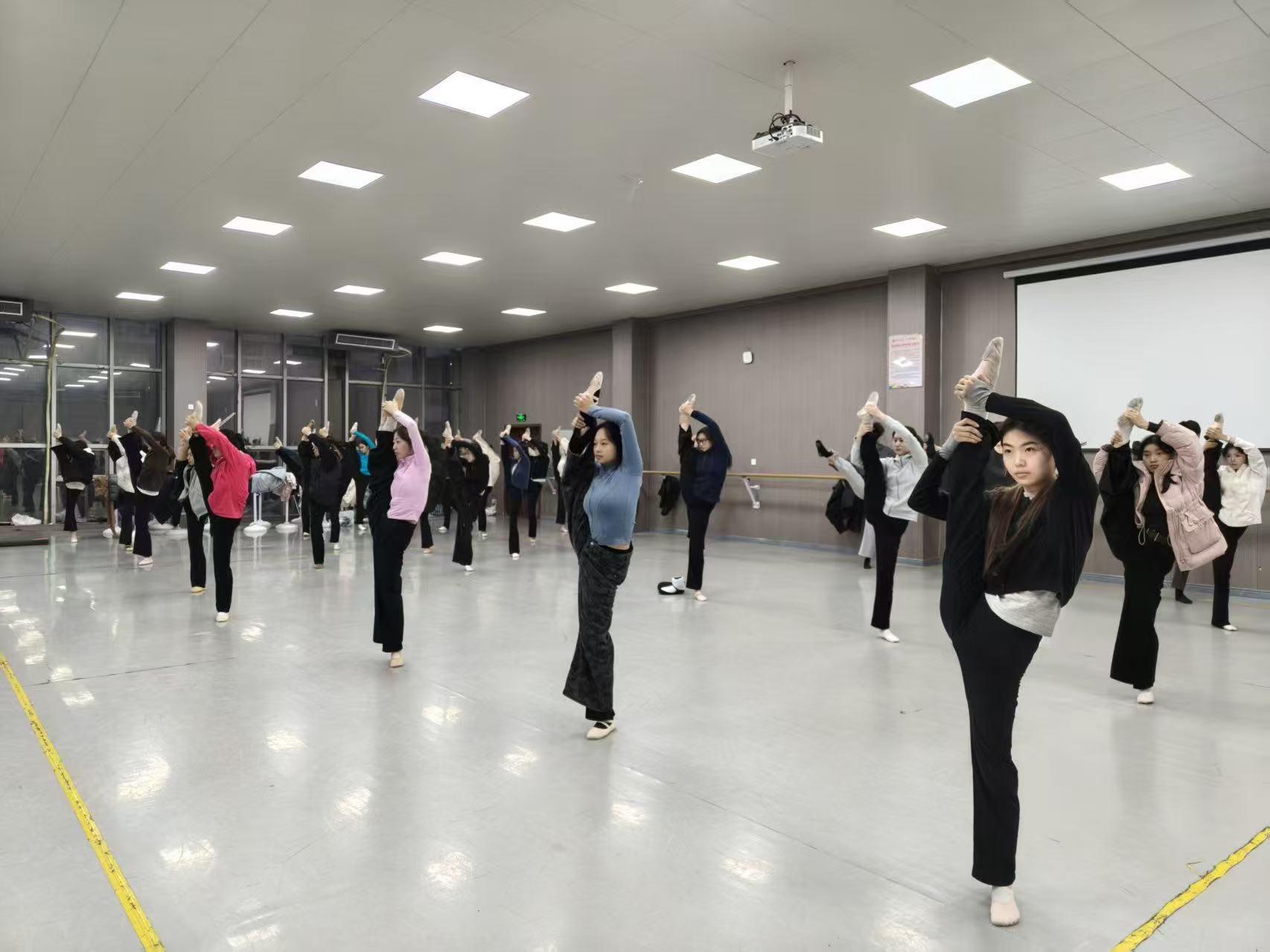 音乐学、音乐表演专业学生在田径场集中进行晨跑和拉伸训练,由辅导员和文体委员组织协调。晨跑环节以慢跑为主,注重节奏控制与强度把握;拉伸环节涵盖上肢、下肢及核心肌群的系统性伸展训练,有效提升学生身体柔韧性与协调性。舞蹈编导专业学生结合专业特点,在舞蹈排练厅开展早功练习,由青春导航员负责组织指导。早功内容包括热身唤醒、软度拉伸、体能训练及技术技巧练习四个模块,训练过程注重动作规范与安全防护,坚持循序渐进、因人施训的原则。通过常态化早功训练,学生身体基本素质与专业基本功得到有效巩固。