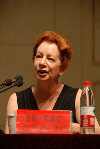 舞蹈家、佛罗里达州立大学教授葛锐· 胡丽翰发表了热情洋溢的讲话,她非常感谢省市领导和我校为举办此次大师班所付出的艰辛努力,对接下来的学习交流充满期待。讲话结束后,葛锐·胡丽翰向我校音乐学院赠送礼品,音乐学院党总支书记孔国庆代表学院接收并回赠了礼品。