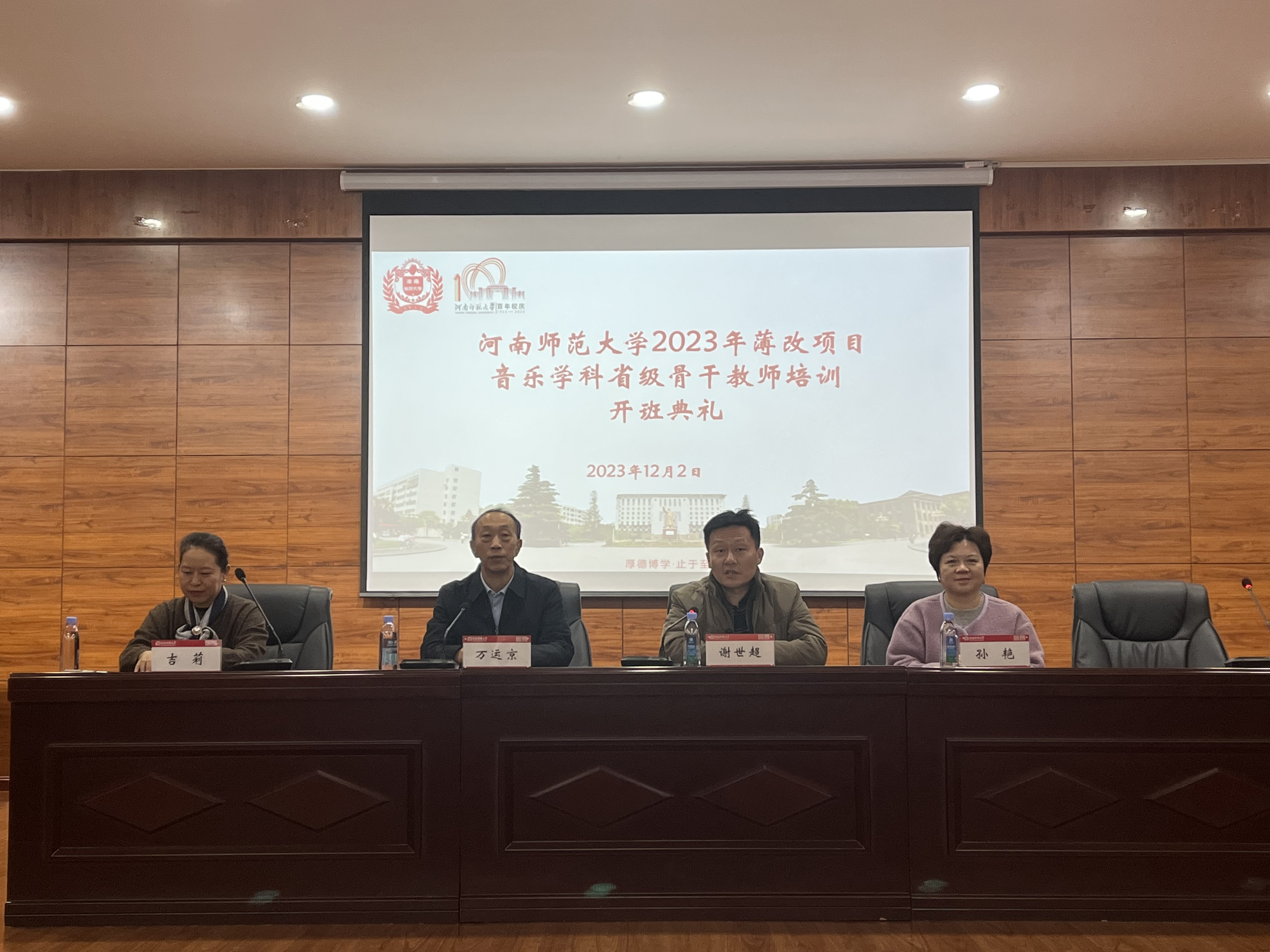 12月2日,2023年河南省义务教育师资薄弱环节暨中小学教师素质提升工程音乐学科省级骨干教师培育项目开班仪式于音乐舞蹈学院501演奏厅举行,院党委书记万运京,班主任吉莉、孙艳出席本次活动,全体学员参加,开班仪式由副院长谢世超主持。