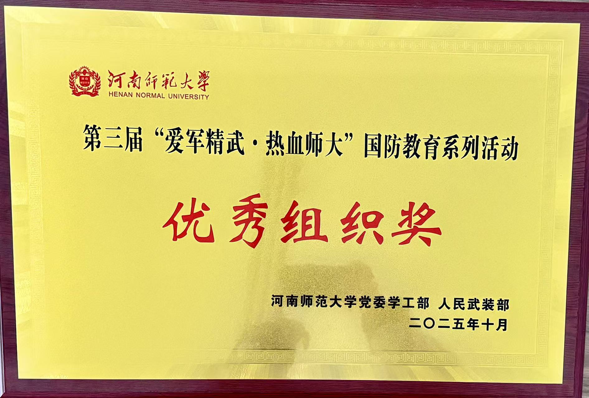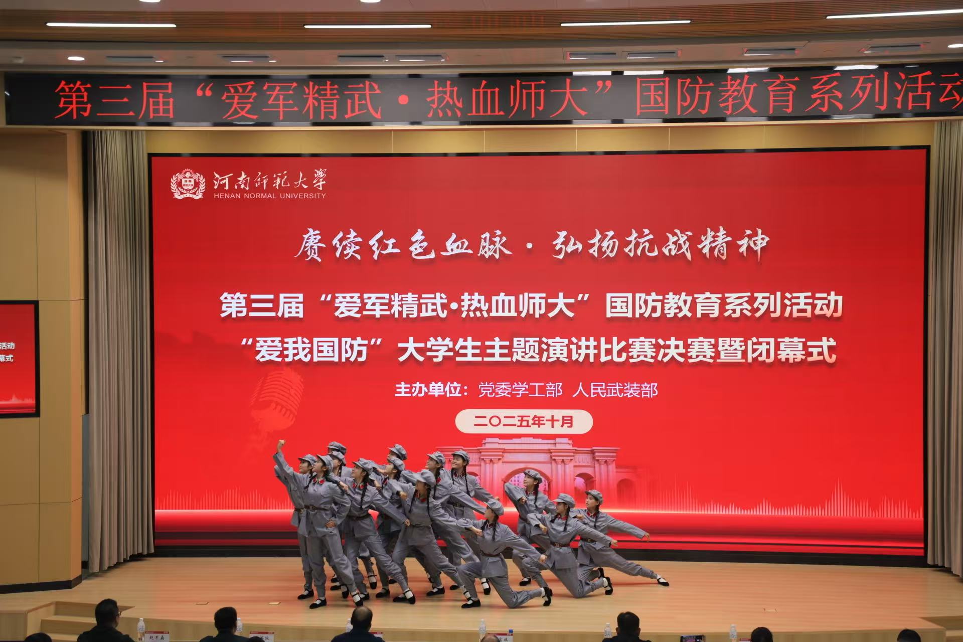 近日,河南师范大学第三届“爱军精武 热血师大”国防教育系列活动圆满落幕。我院在活动中表现卓越,斩获多项荣誉,荣获队列会操二等奖与优秀组织奖;2025级辅导员辅导员朱怡林老师获评“优秀指导教师”,2025级舞蹈编导班学生董佩涵在“爱我国防”演讲比赛中荣获三等奖,全面展现了学院师生出色的专业素养与昂扬的精神风貌。