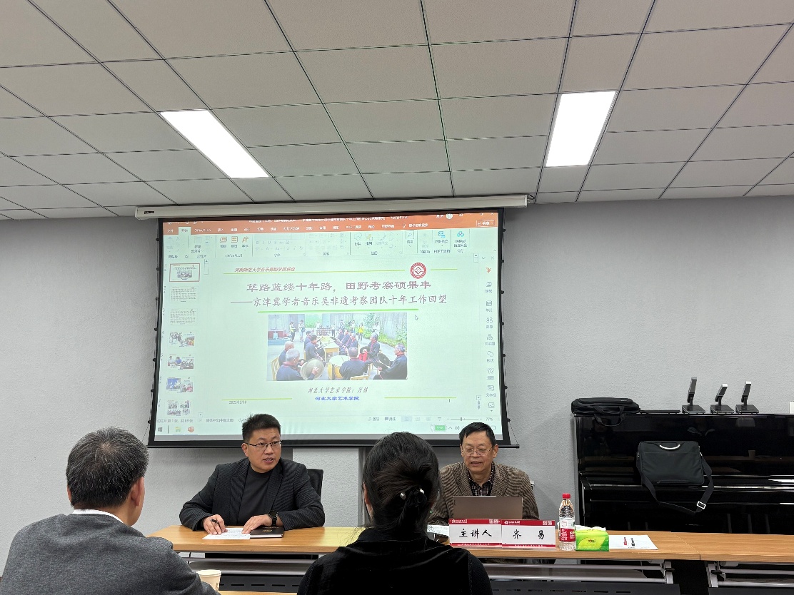 12月10日上午,河北大学艺术学院教授、京津冀学者音乐类非遗考察团队召集人齐易应邀做客“音舞名家大讲堂”,作题为《筚路蓝缕十年路 田野考察硕果丰——京津冀学者音乐类非遗考察团队十年工作回望》的学术讲座。本次讲座在学院二楼会议室举行,由院长罗强主持,学院部分教师及本科生、硕士生到场聆听。