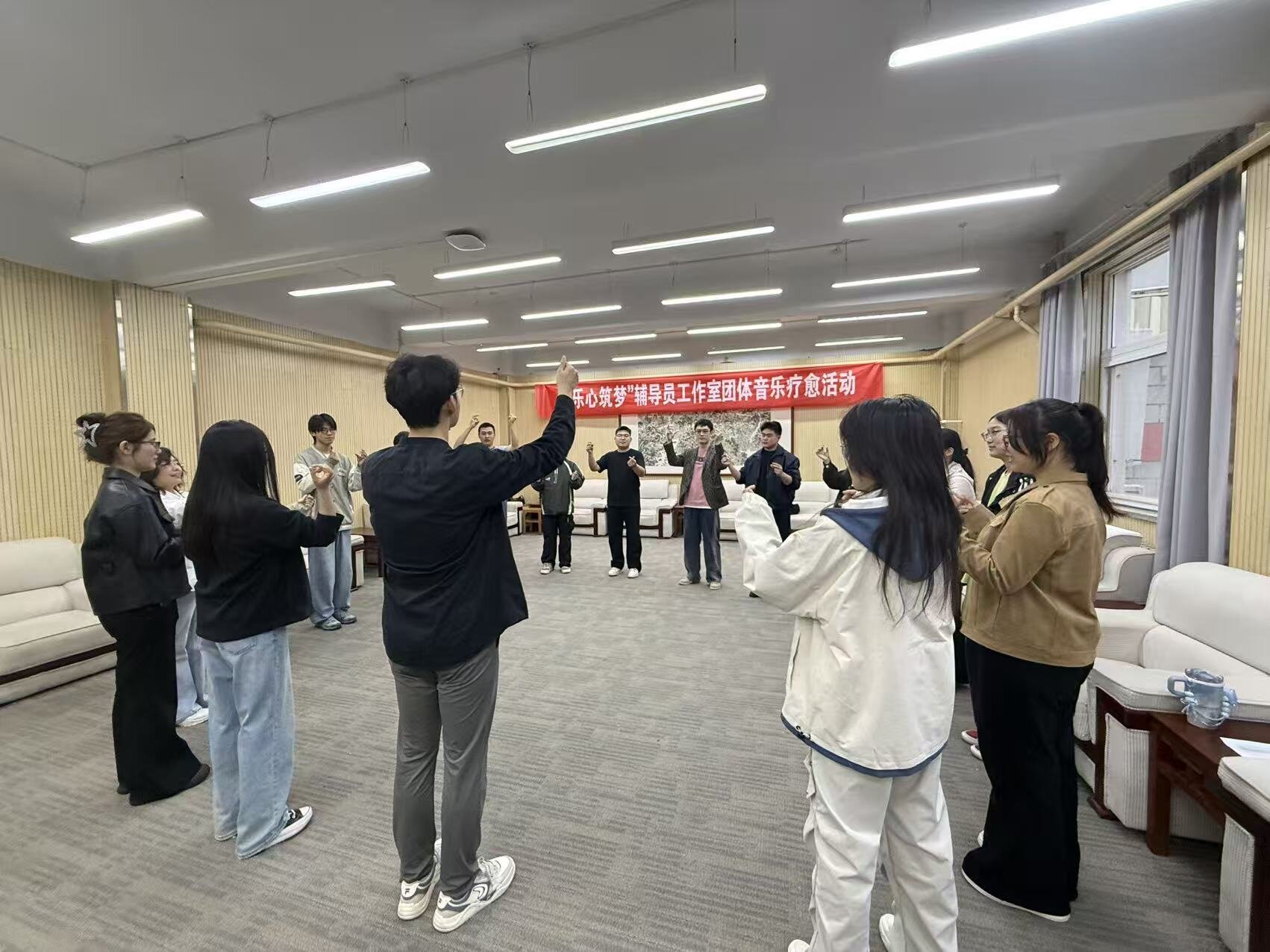 为深入推动心理育人工作落地见效,探索具有艺术学科特色的心理健康教育新模式,4月21日下午,我院“乐心筑梦”辅导员工作室在学院一楼MIDI教室成功举办“乐心·无声共振”心理健康团体辅导活动。本次活动特邀学院音乐治疗专业教师张睿婷担任主持并引导,来自各年级不同专业的学生参与了此次身心体验活动。