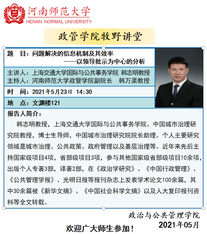 Copyright © 2021 | 河南省新乡市建设东路46号 河南师范大学政治与公共管理学院 |0373-3325967 |邮箱:zgwangzhan@126.com