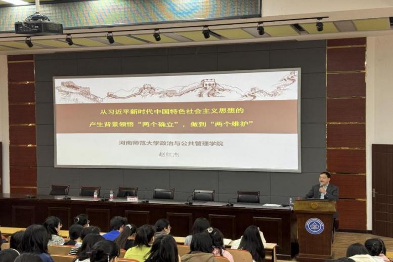 3月30日上午,政治与公共管理学院开展理论学习专题辅导暨春季开学思政第一课。学院党委书记赵红杰担任主讲人并做专题辅导。学院全体政工干部、党员代表、入党积极分子培训班学员、学生骨干等200余人参与。