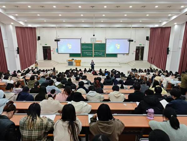 李婷以“从‘校园学习’到‘西部奉献’——新时代青年的使命担当与人生选择”为题,结合在新疆支教的实际体验,从三个方面与同学们展开深入交流。在认识西部方面,她通过真实案例与切身体会,生动展现了西部地区的发展现状与人才需求,帮助同学们打破对西部的刻板印象;在价值引领方面,她阐释了“把个人理想融入党和国家事业”的深刻内涵,鼓励大家在服务国家战略中实现人生价值;在实践路径方面,她系统介绍了西部就业的政策支持与发展机遇,建议有志学子提前做好知识储备与能力锻炼。在互动环节,李婷还围绕同学们关心的“专业匹配度”“职业发展空间”“生活环境适应”等问题,一一作出细致解答。
