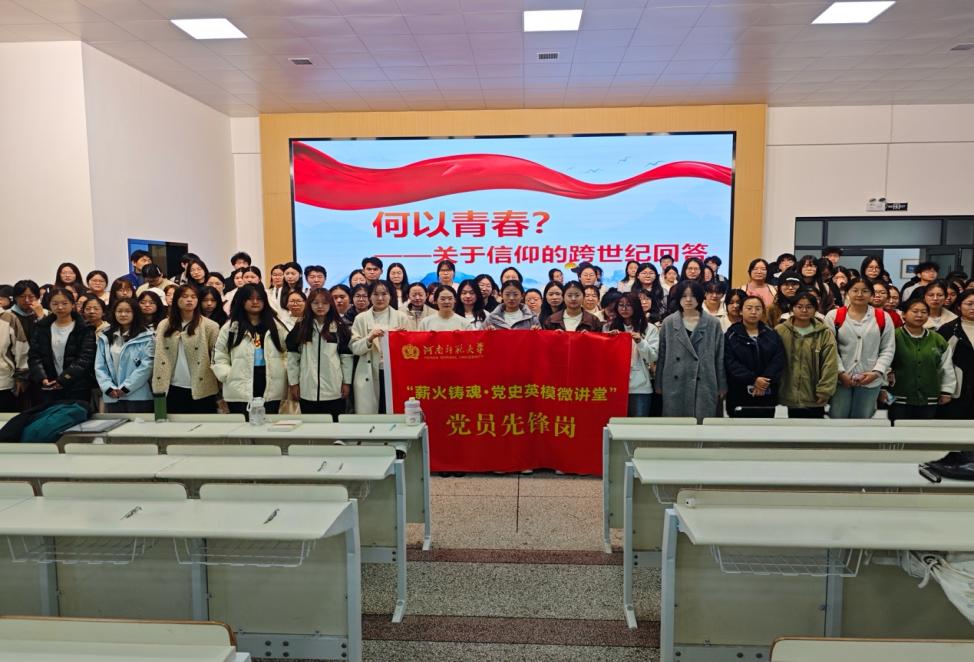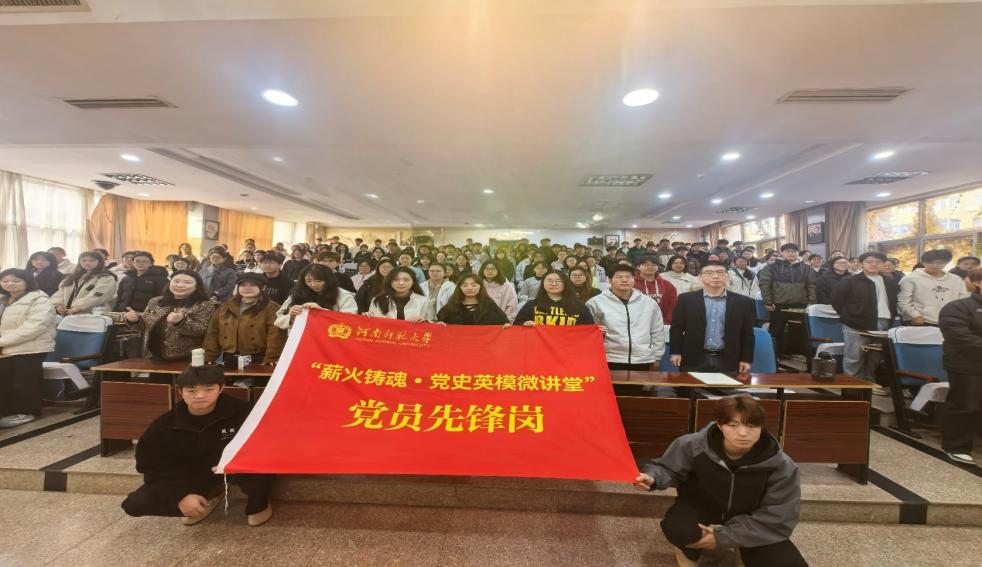 为深化青年思想政治引领,教工政治学党支部充分发挥专业优势,以校党委首批授牌的“薪火铸魂·党史英模微讲堂”党员先锋岗为平台,与校团委联合策划开展“党史中的青春故事”系列主题宣讲活动。2025年11月份,先锋岗宣讲团先后走进外国语学院、物理学院,面向500余名入团积极分子开展宣讲活动。