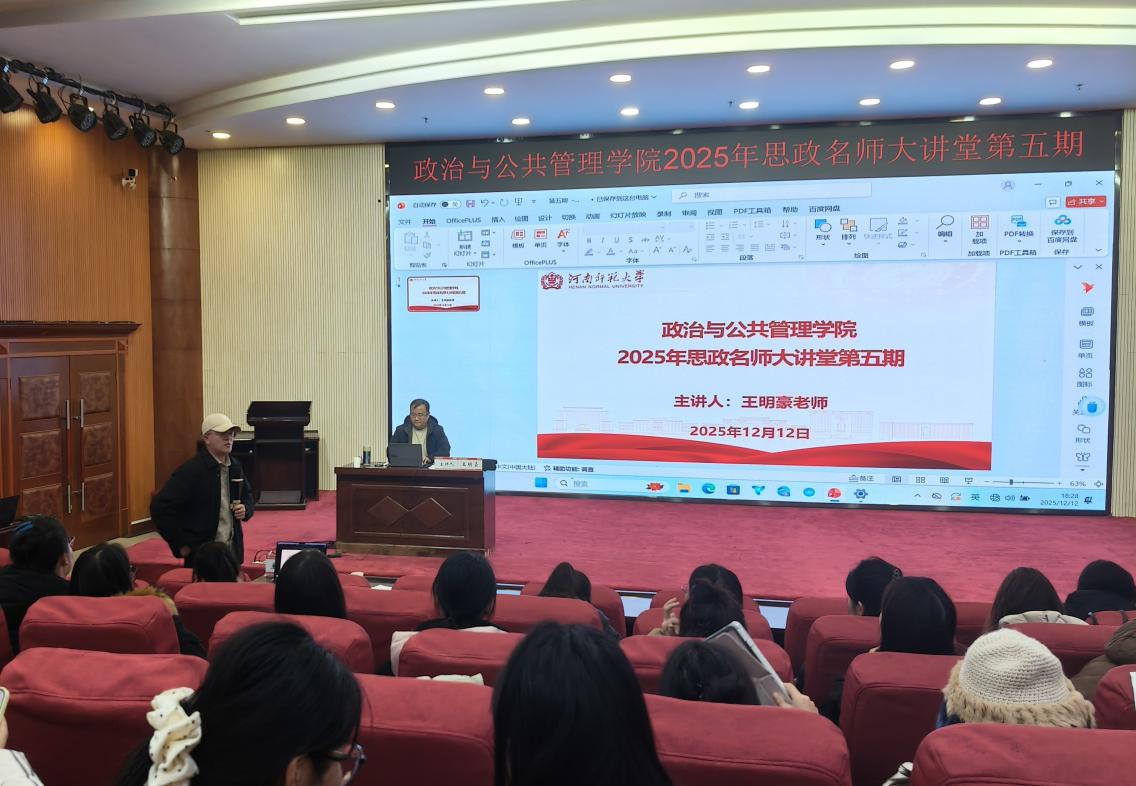 12月12日下午,学院于求是东楼思政平台举办了第五期“思政名师大讲堂”活动。本次活动采取线上与线下相结合的方式,特邀河南省骨干教师王明豪担任主讲嘉宾,学院青年教师、2024级和2025级学科教学(思政)专业全体研究生、其他专业的研究生共同参与了此次活动。活动由学院李小龙老师主持。