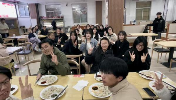 活动在温馨融洽的氛围中展开。师生们围在桌案前,揉面、擀皮、调馅、包捏,分工协作,默契配合。学院老师亲切地参与到同学们中间,一边包饺子一边询问大家的学习生活情况,现场气氛温馨融洽。在等待饺子出锅的间隙,同学们围坐畅谈,张旭等同学分享了自己的学习心得与入学以来的趣事,活动现场其乐融融。最后,师生共同品尝饺子,享用劳动成果,全体师生合影留念,定格下这充满温情的集体记忆。